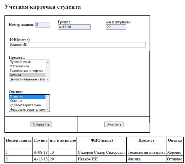 6. Далее приведен возможный вариант вывода данных после отправки на сервер (не забудьте, что у вас другой вариант):