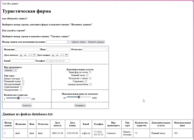 ДЗ КМ-7: КМ-7. Запись, обработка и извлечение информации из файлов на диске. Вариант туристическая фирма