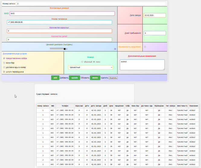 3. Добавлять записи в базу данных (таблицу). Для этого, очевидно, придется добавлять соответствующие кнопки (кнопку Reset можно не делать) или иные элементы в заданную html-форму.
