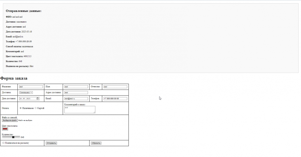 Задание: на базе формы, использованной в работе № 1 1-ой части курса Web-технологии, pазработать web-приложение для отправки данных на сервер: