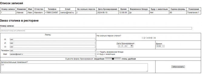 ДЗ КМ-10: КМ-10. Примеры разработки динамических веб-приложений. Вариант Заказ столика в ресторане вариант Заказ столика в рест