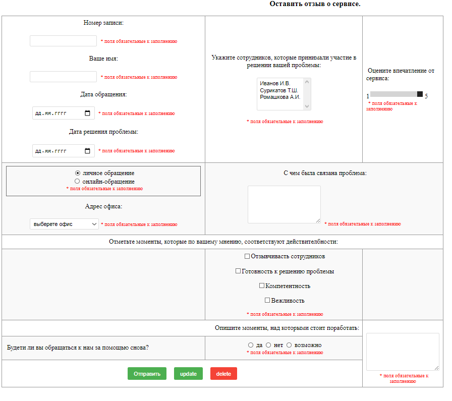 ДЗ КМ-10: КМ-10. Примеры разработки динамических веб-приложений. Вариант Оставить отзыв о сервисе вариант Оставить отзыв о сер