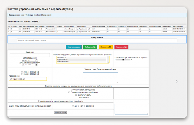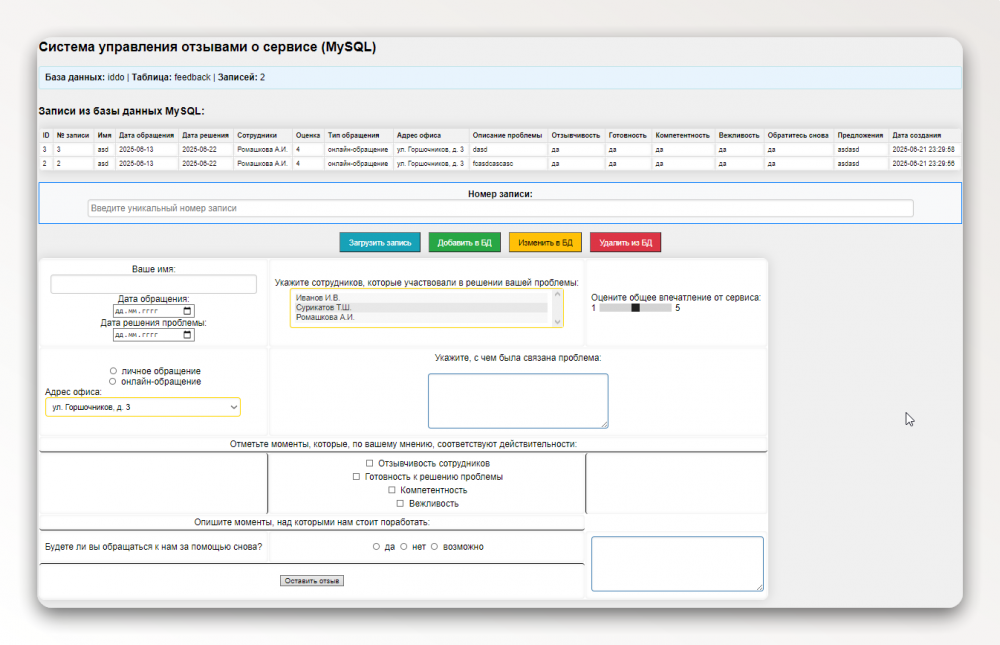 ДЗ КМ-9: КМ-9. СУБД MySQL как составная часть стэка LAMP. Вариант Оставить отзыв о сервисе вариант Оставить отзыв о сер