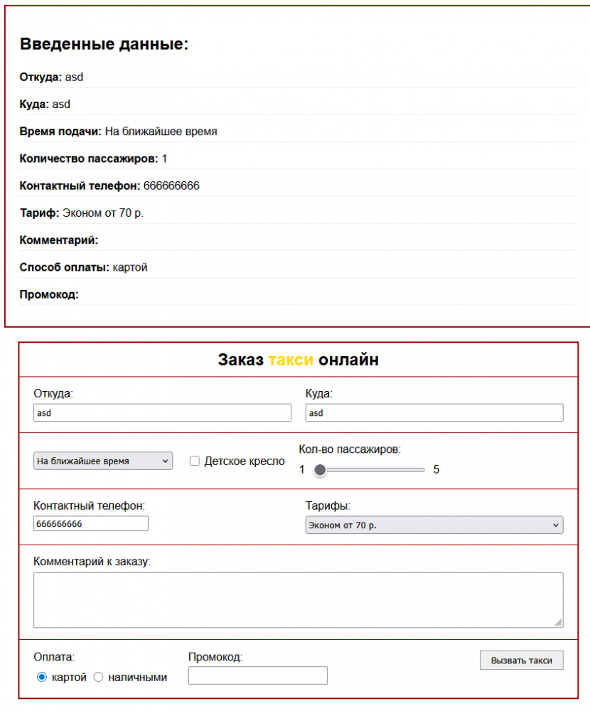 КМ-6. Передача параметров между сценариями (скриптами) PHP. Отправка данных на сервер с помощью форм. Вариант Заказ такси онлайн