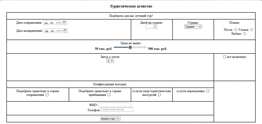 3. Поля ввода данных типа даты, времени, целых чисел, телефона, электронной почты должны быть организованы с помощью, соответствующих этим типам данным, тегов форм HTML 5, а не с помощью type='text'. Для поля ввода телефона необходимо в форму добавить образец ввода цифр и символов. Например, +7 ХХХ-ХХХ-ХХ, ХХХХХХХХХХХ, ХХ-ХХХХХХХХ и т.п. Пользователю должно быть понятно, в каком виде вводить информацию. Не корректные и 'пустые' данные не должны передаваться на сервер.