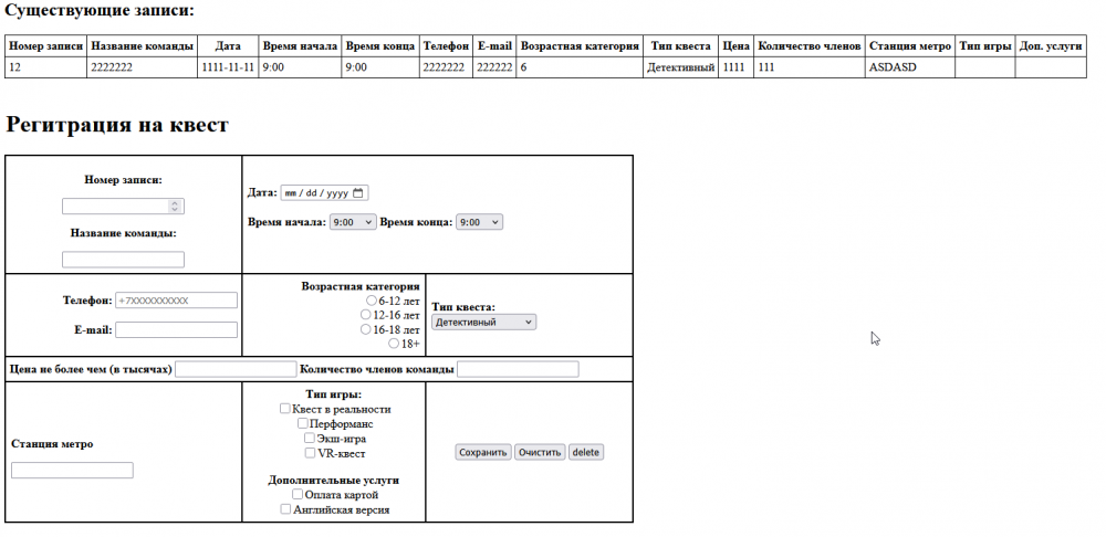 Главная » Учебные материалы » WEB-технологии » Домашние задания » ИДДО НИУ «МЭИ» » Несколько классов/семестров » Номер КМ-7 » Вариант Регистрация на квест » КМ-7. Запись, обработка и извлечение информации из файлов на диске. Вариант Регистрация на квест