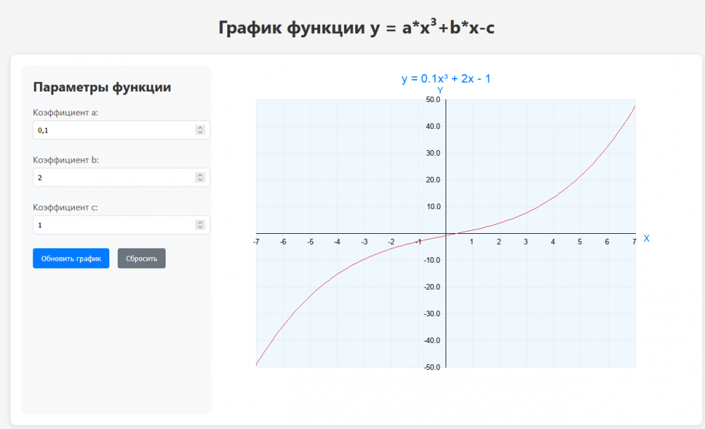 НАЗВАНИЕ ПИСЬМЕННОЙ РАБОТЫ: Создание и обработка изображений средствами PHP. ЗАДАНИЕ: с помощью конструкций языка веб-программирования PHP разработать web-приложение для рисования графика функции y = a*tg(x+b)+c. Внешний вид приложения представлен на рисунке ниже (не забывайте, что это пример и у вас другая функция). ОПИСАНИЕ ЗАДАНИЯ: - Количество файлов проекта не ограничено. - Задание должно быть реализовано с помощью оконной системы (2 окна на одном экране, можно использовать фреймы): в одном окне вызывающая форма с параметрами рисунка функции. Второе окно - непосредственно изображение рисунка функции. Все изменения данных в форме должны отображаться на рисунке функции. - Все надписи на графике функции и координатной сетке должны быть выполнены с использованием ttf-фонтов. Их можно найти в Интернете или на вашем компьютере в соответствующих каталогах. Фонты должны быть размещены в рабочем/рабочих каталоге вашего приложения. В некоторых случаях, в зависимости от версии библиотеки GD2 и настроек окружающей среды вашей ОС, при использовании ttf-фонтов, необходимо указывать их полные пути в операционной системе (в некоторых - достаточно относительных путей). В связи с этим, скрипты должны быть написаны таким образом, чтобы устойчиво функционировать на любой машине, где установлено соответствующее программное обеспечение (web-сервер, PHP, GD2 и т.п.).Курс Web-технологии