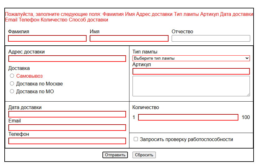 ДЗ КМ-3: КМ-3. Основы JavaScript - обработка событий, проверка ввода данных в форму. Вариант Доставка вариант Доставка