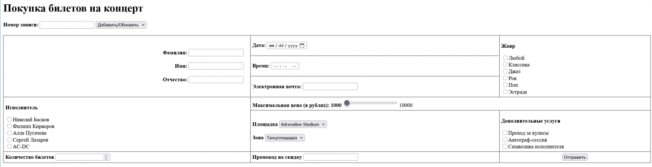 ДЗ КМ-10: КМ-10. Примеры разработки динамических веб-приложений. Вариант Заказ Покупка билетов на концерт вариант Покупка билетов на к