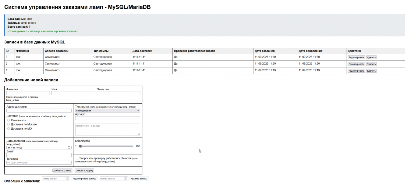Задание: используя в качестве основы веб-приложение созданное в письменной работе № 4, разработать дополнительный функционал, позволяющий редактировать и удалять записи в базе данных по idили другому уникальному идентификатору записи.