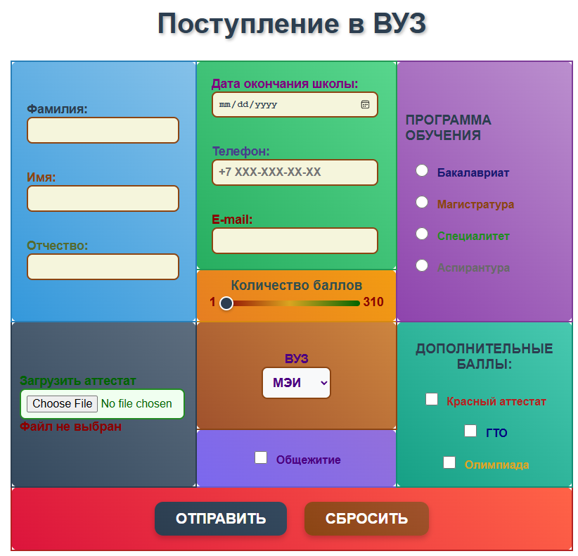 ДЗ КМ-2: КМ-2. Основы каскадных таблиц стилей - CSS. Спецсимволы в HTML. Вариант Поступление в ВУЗ вариант 10