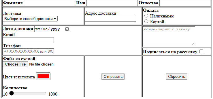 ДЗ КМ-1: КМ-1. Основы языка разметки HTML - элементы форматирования html-страницы, таблицы, фреймы, формы. Вариант 30 Доставка