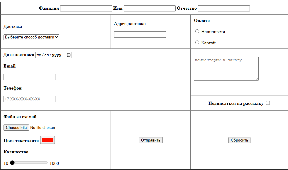 Главная » Учебные материалы » WEB-технологии » Домашние задания » ИДДО НИУ «МЭИ» » Несколько классов/семестров » Номер КМ-1 » Вариант 30 » КМ-1. Основы языка разметки HTML - элементы форматирования html-страницы, таблицы, фреймы, формы. Вариант 30 Доставка