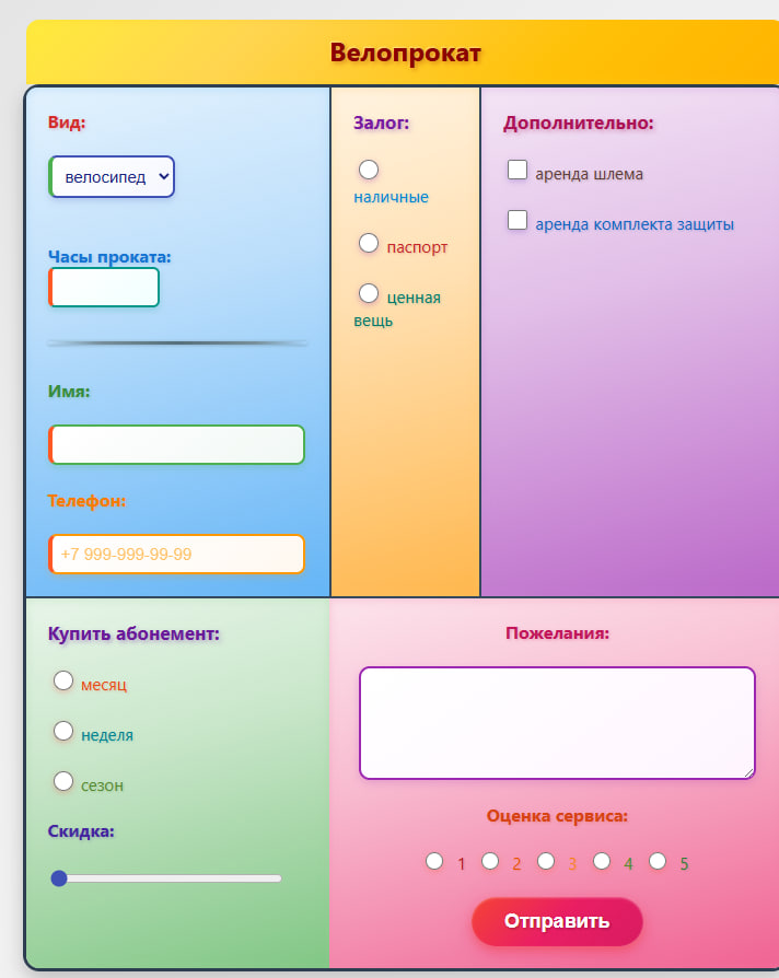 ДЗ КМ-2: КМ-2. Основы каскадных таблиц стилей - CSS. Спецсимволы в HTML. Вариант 18 Велопрокат вариант 18