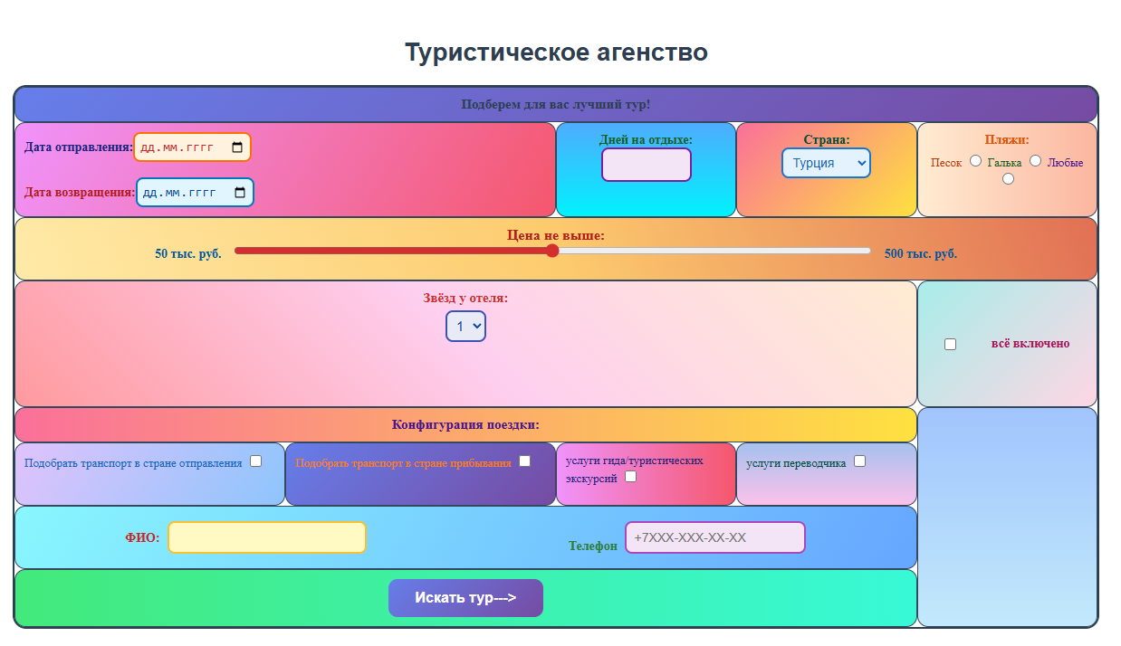 ДЗ КМ-2: КМ-2. Основы каскадных таблиц стилей - CSS. Спецсимволы в HTML. Вариант 27 Туристическое агентство вариант 27