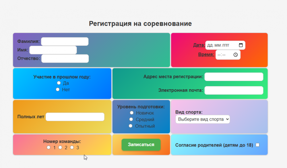 ДЗ КМ-2: КМ-2. Основы каскадных таблиц стилей - CSS. Спецсимволы в HTML. Вариант 7 Регистрация на соревнование вариант 7