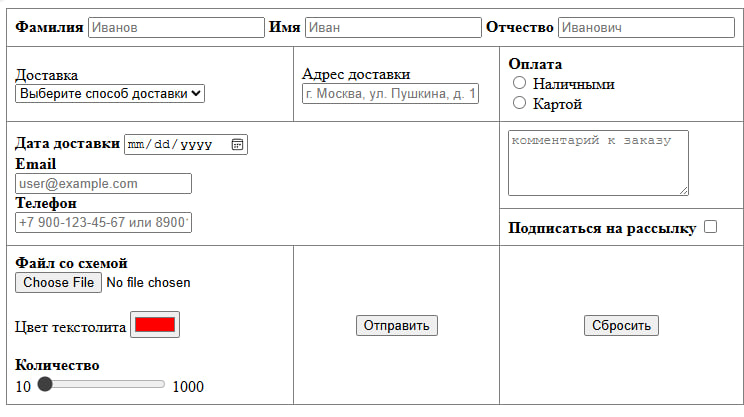 Разработать html-страницу (без CSS и jаvascript) для передачи данных на