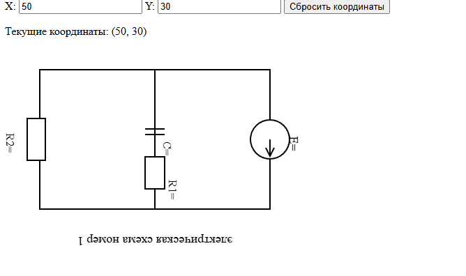 с помощью конструкций jаvascript и CANVAS, нарисовать схему изображенную на рисунке, размещенном ниже. Координаты левого верхнего угла рисунка должны задаваться в отдельных полях ввода, размещенных произвольно в текущем окне браузера (там же, где и рисунок). При изменении координат рисунок должен ‘перерисовываться’ (перемещаться) в соответствии с новыми координатами. Все надписи и обозначения на рисунке обязательны. Ориентация схемы на плоскости имеет значение.