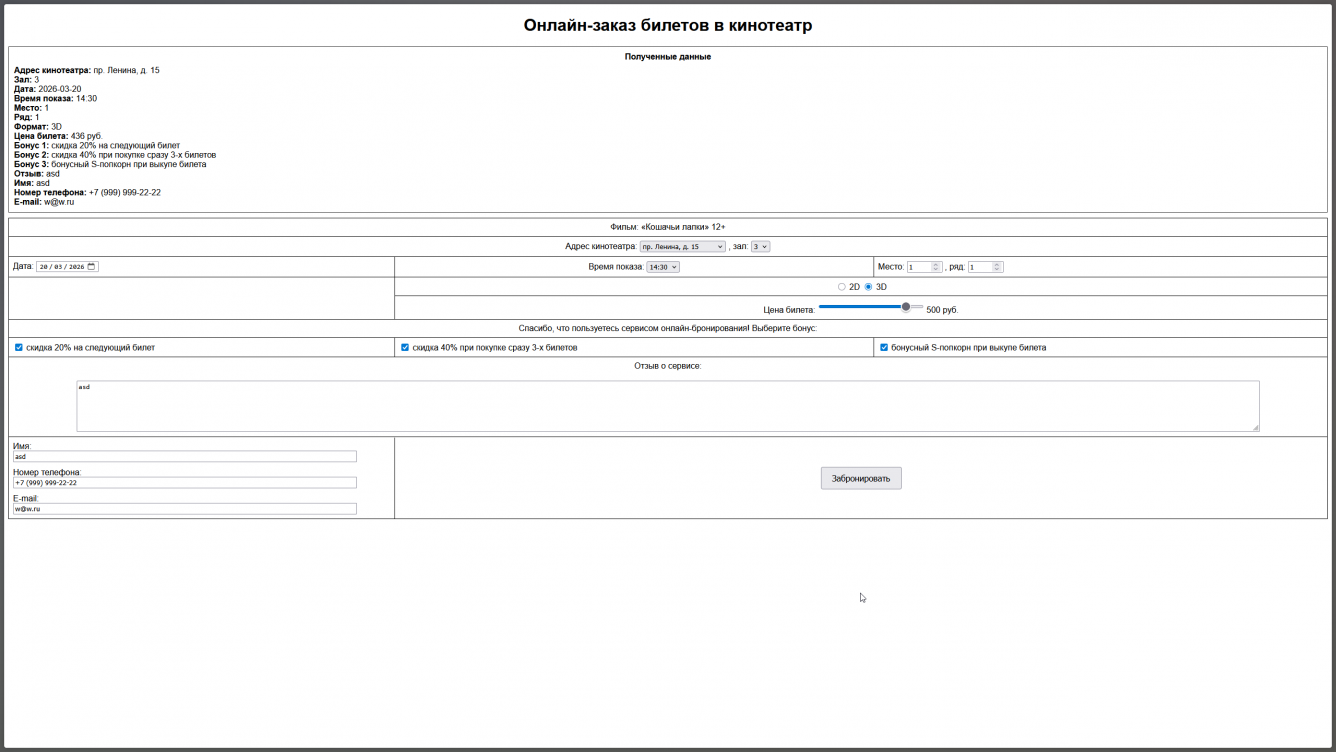 💯Готовая работа КМ-6: Передача параметров между сценариями (скриптами) PHP. Отправка данных на сервер с помощью форм. Курс Web-технологии🔥 Вариант Онлайн заказ билетов в кинотеатр