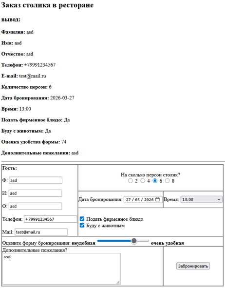 💯Готовая работа КМ-6: Передача параметров между сценариями (скриптами) PHP. Отправка данных на сервер с помощью форм. Курс Web-технологии🔥 Вариант Заказ столика в ресторане