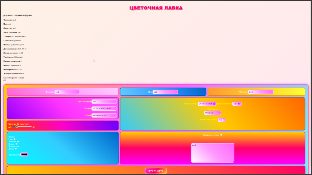 💯Готовая работа КМ-6: Передача параметров между сценариями (скриптами) PHP. Отправка данных на сервер с помощью форм. Курс Web-технологии🔥 Вариант Цветочная лавка