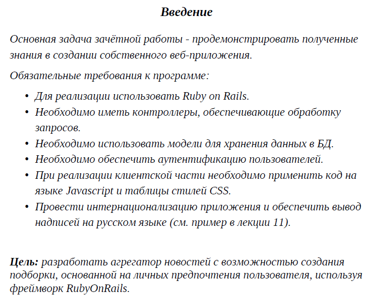 Для студентов МГТУ им. Н.Э.Баумана по предмету Языки интернет-программированияОтчет по зачетной работе "Агрегатор персонифицированных новостей"Отчет по зачетной работе "Агрегатор персонифицированных новостей"