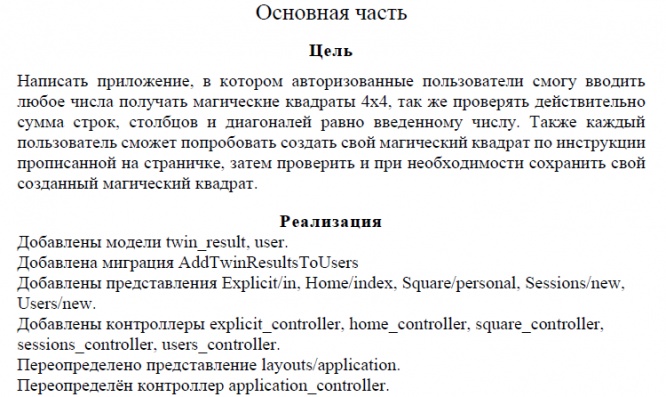 Главная » Учебные материалы » Языки интернет-программирования » Ответы (шпаргалки) » МГТУ им. Н.Э.Баумана » 3 семестр » К зачёту » Отчет по зачетной работе "Веб-приложение для получения магических квадратов 4х4"