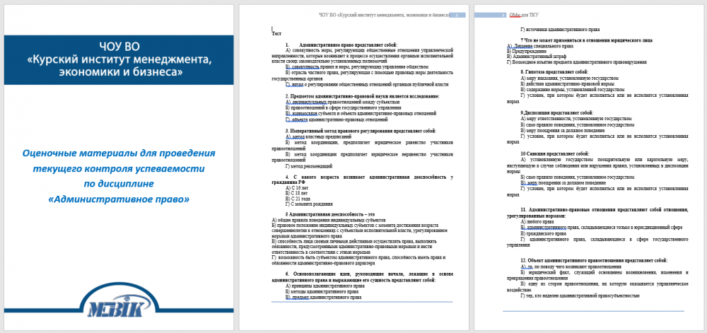 Тест 1.Административное право представляет собой: А) совокупность норм, регулирующих общественные отношения управленческой направленности, которые возникают в процессе осуществления органами исполнительной власти своих законодательно установленных полномочий Б) совокупность правил и норм, регулирующих управление обществом В) отрасль частного права, регулирующая с помощью правовых норм деятельность государственных органов Г) наука о регулировании общественных отношений органами публичной власти 2. Предметом административно-правовой науки является исследование: А) индивидуальных правоотношений между субъектами Б) правоотношений в сфере государственного управления В) взаимосвязи субъекта и объекта административно-правовых отношений Г) объекта административно-правовых отношений 3.