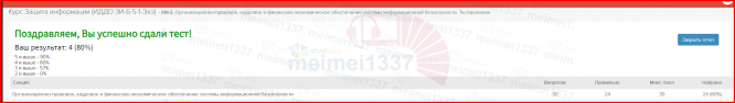 Для студентов ИДДО НИУ «МЭИ» по предмету Защита информацииКМ-3. Организационно-правовое, кадровое и финансово-экономическое обеспечение системы информационной безопасности. Тестирование - 80%КМ-3. Организационно-правовое, кадровое и финансово-экономическое обеспечение системы информационной безопасности. Тестирование - 80%