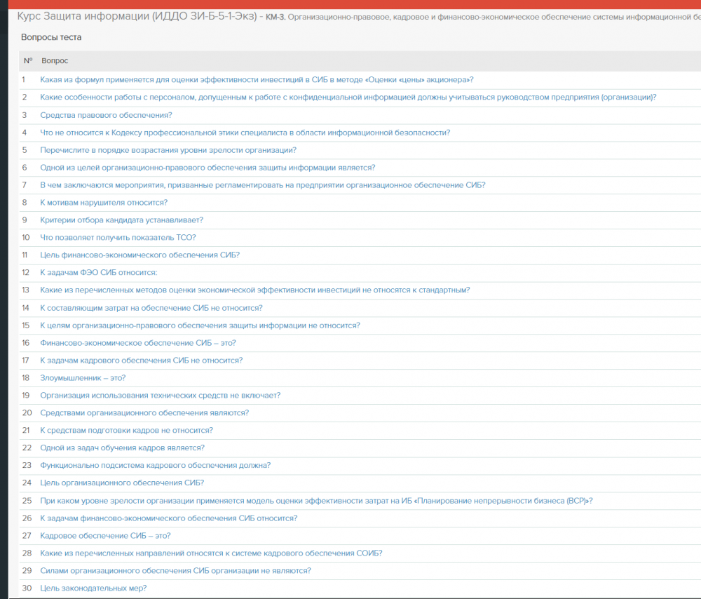 Ответы к контрольной работе КМ-3: Организационно-правовое, кадровое и финансово-экономическое обеспечение системы информационной безопасности