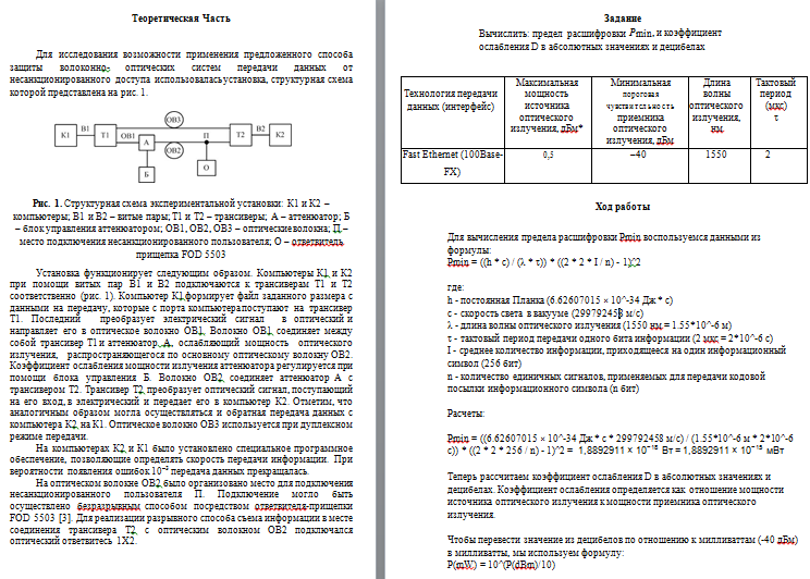Технология передачи данных (интерфейс) | Максимальная мощность источника оптического излучения, дБм* | Минимальная пороговая чувствительность приемника оптического излучения, дБм | Длина волны оптического излучения, нм | Тактовый период (мкс) τ |