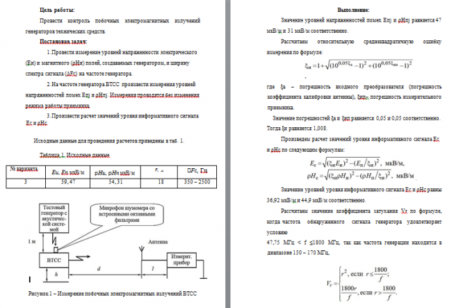 - Провести измерение уровней напряженности электрического (Eи) и магнитного (ρHи) полей, создаваемых генератором, и ширину спектра сигнала (ΔFc) на частоте генератора.