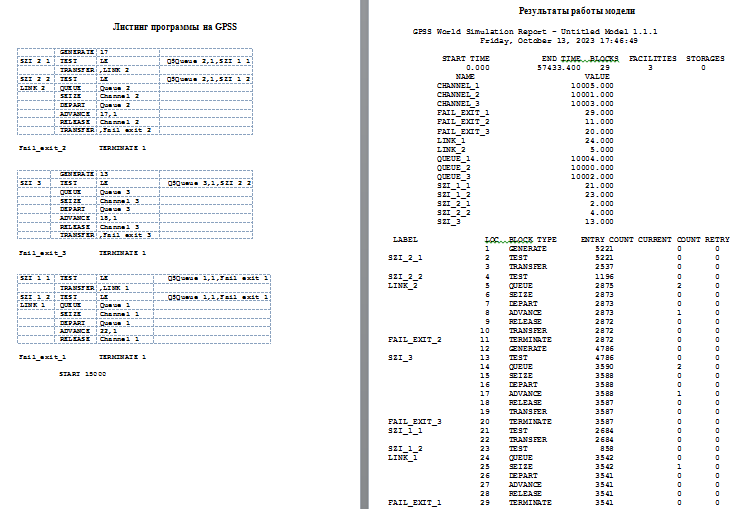 Ниже представлена имитационная модель, иллюстрирующая процесс работы четырёх СЗИ, защищающая от трёх типов атак, созданная при помощи языка GPSS
