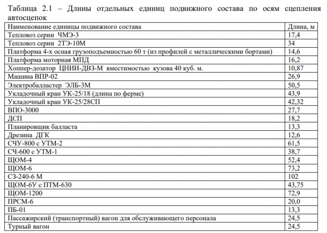 Длины поездов рассчитываем в соответствии с длинами отдельных единиц подвижного состава по осям сцепления автосцепок