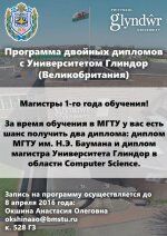 У вас есть шанс за время обучения в МГТУ в дополнение к бауманскому диплому получить британский диплом магистра Университета Глиндор в области Computer Science.