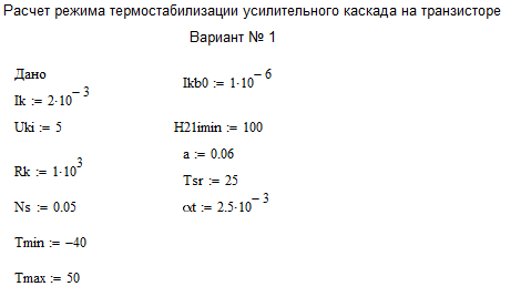 Для студентов МАИ по предмету СхемотехникаРГР №2 - Расчет термостабилизацииРГР №2 - Расчет термостабилизации
