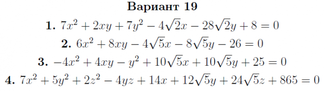 ДЗ 1.2: Кривые и поверхности второго порядка вариант 19
