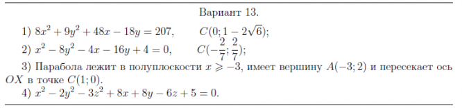 ДЗ 2: Кривые и поверхности второго порядка вариант 13
