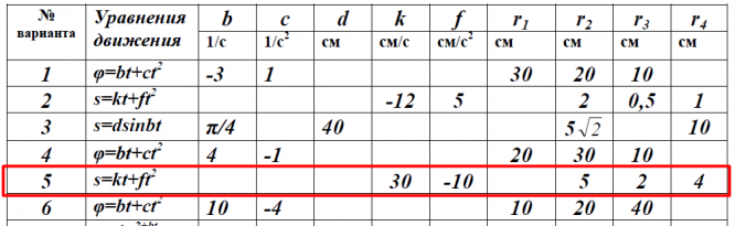 ДЗ 1: Кинематика точки и простейших движений твердого тела вариант 5