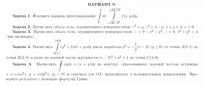 ДЗ 1: Кратные и криволинейные интегралы вариант 9