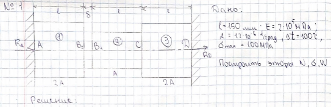 Полный типовой расчет по сопротивлению материалов №1 "Растяжение — сжатие, Кручение", 3 задачи, зачтено