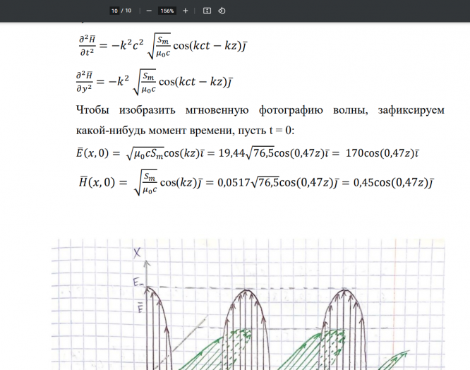 - записать волновое уравнение для магнитной и электрической компонент рассматриваемой электромагнитной волны и изобразить схематично мгновенную фотографию этой волны.
