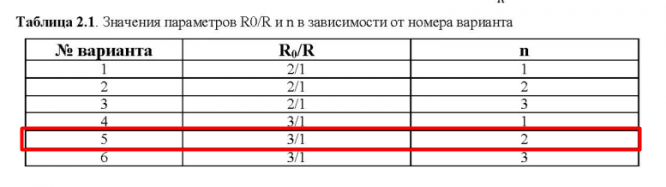 Функция =f(r) для нечётных вариантов имеет вид: =(R0 n +Rn -rn )/Rn . Таблица 2.1. Значения параметров R0/R и n в зависимости от номера варианта.