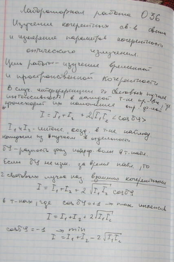 Лабораторная работа О: Изучение когерентных свойств света и измерение параметров когерентности оптического излучения вариант 36, 37