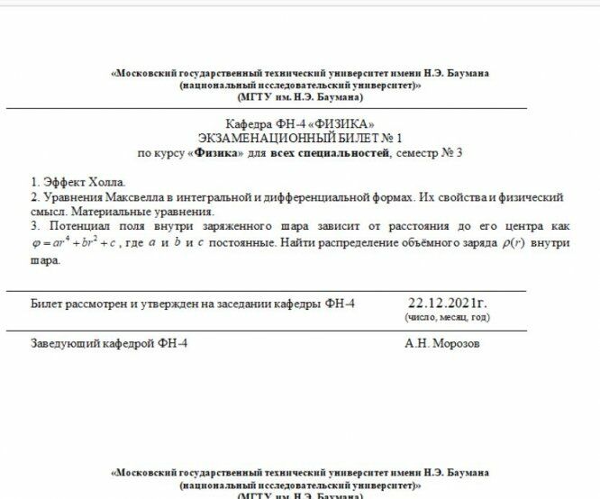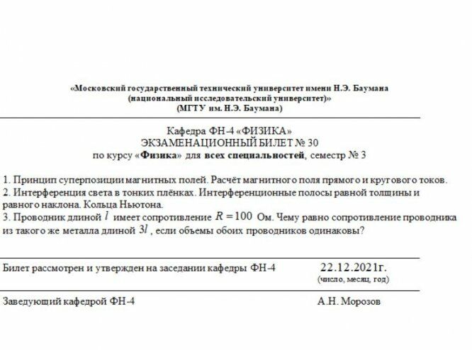 Для студентов МГТУ им. Н.Э.Баумана по предмету ФизикаЭкзаменационные билеты 2021-2022 гЭкзаменационные билеты 2021-2022 г