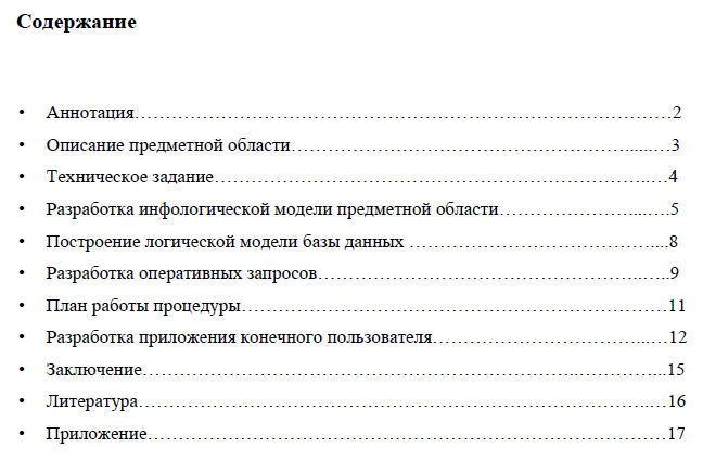 Характеристики курсовой работы
