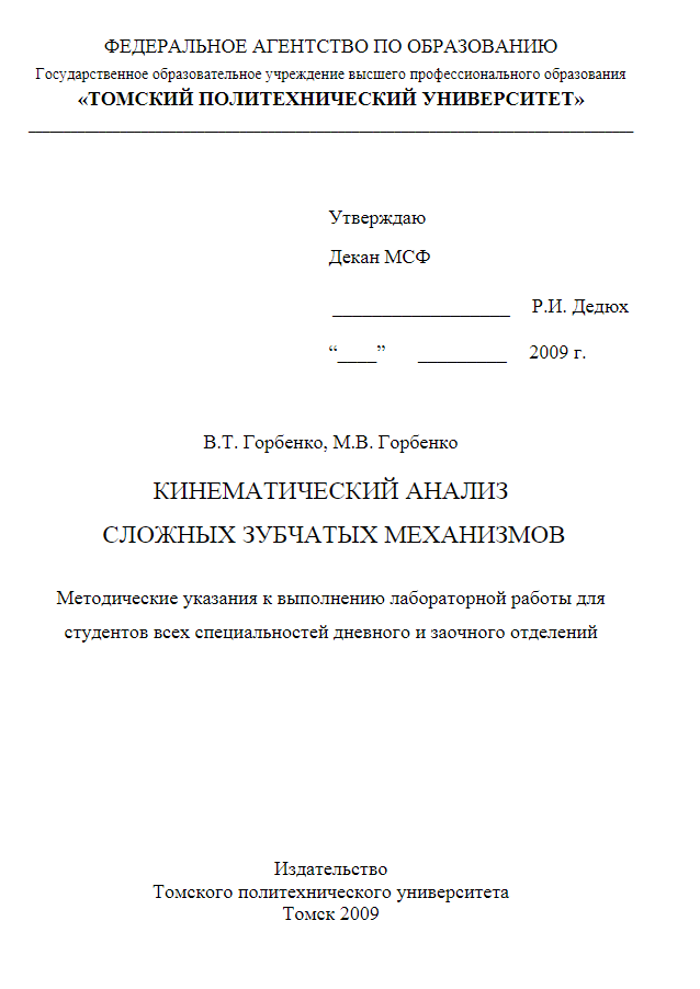 Для студентов МГТУ им. Н.Э.Баумана по предмету Детали машин (ДМ)В.Т. Горбенко, М.В. Горбенко - Кинематический анализ сложных зубчатых механизмовВ.Т. Горбенко, М.В. Горбенко - Кинематический анализ сложных зубчатых механизмов