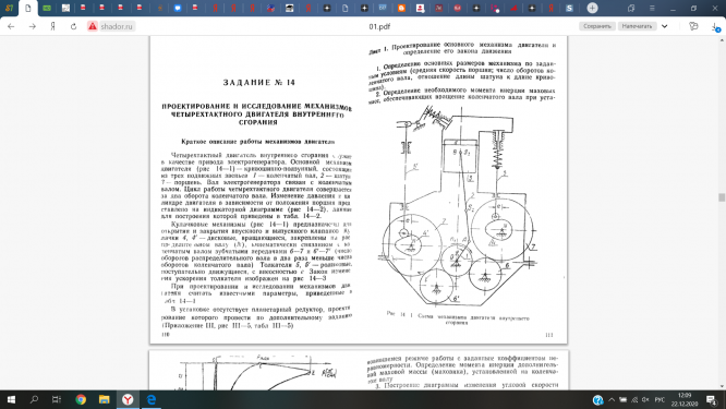 Курсовая работа 14: Проектирование и исследование механизмов четырехтактного двигателя внутреннего сгорания вариант Г