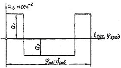 Качающийся толкатель 12 имеет ускорение, которое изменяется по закону, представленному на рис. 4. Работа клапанов строго увязана по фазам с вращением коленчатого вала, угловая скорость которого в два раза больше угловой скорости кулачкового вала. Движение каждому ведущему колесу автомобиля передаётся от дифференциалов через карданный вал 18 и зубчатую передачу 19-20 ( рис. 5 ). Планетарная коробка скоростей обеспечивает получение четырёх скоростей и задний ход. 1-я передача, кинематическая схема которой представлена на рис. 6, состоит из колёс 3-2-1-7-8-9 и водила в, образующих сдвоенный планетарный механизм. Передаточное отношение коробки передач в этом случае