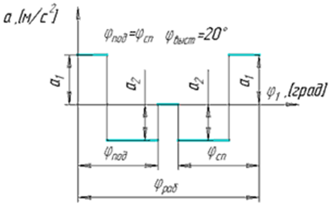 Смазка механизмов насоса выполняется плунжерным масляным насосом кулачкового типа. Кулачок 7 приводит в движение толкатель 8 (плунжер насоса). При проектировании кулачкового механизма необходимо осуществить заданный закон изменения ускорения толкателя (рис. 2).